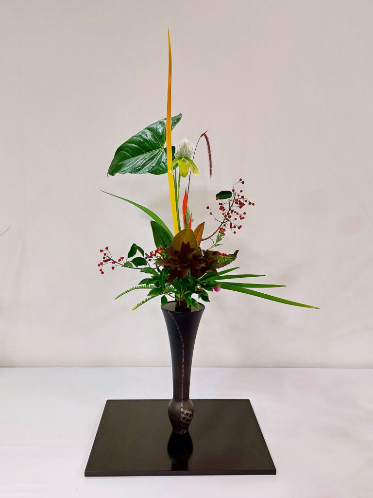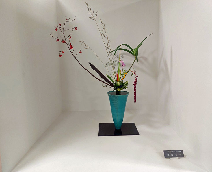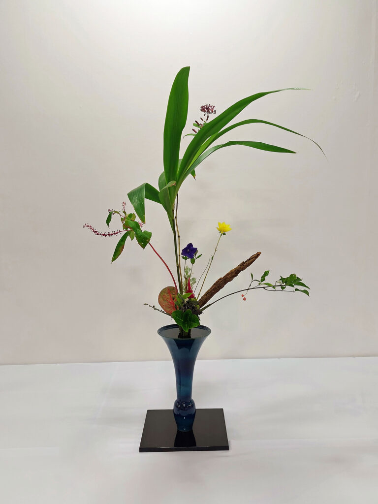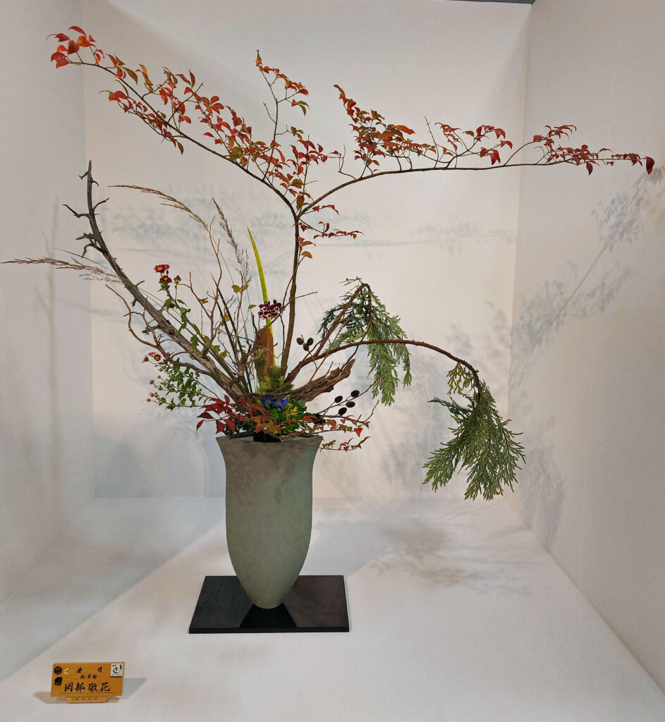 今回の花展に出瓶させていただき、改めて池坊華道の奥深さと、花を通して人と人とがつながる喜びを強く感じる機会となりました。東北六県の門弟が一堂に会するこの花展は、単なる発表の場にとどまらず、互いの研鑽の成果を分かち合い、次への意欲を高める貴重な場であったと思います。今回の出品により自身の課題も明確にすると同時に、今後も学び続けたいという意欲を新たにするものとなりました。この花展で得た気づきと感謝の気持ちをを大切に、これからも花と真摯に向き合い、池坊の教えを大切にしながら精進していきたいと思いました。
